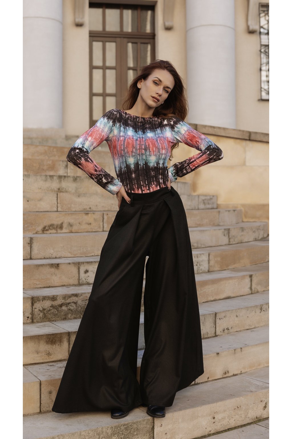 BLACK kalhotová sukně je vysoce kvalitní produkt díky surovině. Na výrobu těchto kalhot jsme použili ušlechtilou látku - ve složení máme viskózu, polyester, elastan a vlnu. Tato neobvyklá tkanina je velmi hustá - bude teplá a zároveň extrémně měkká.