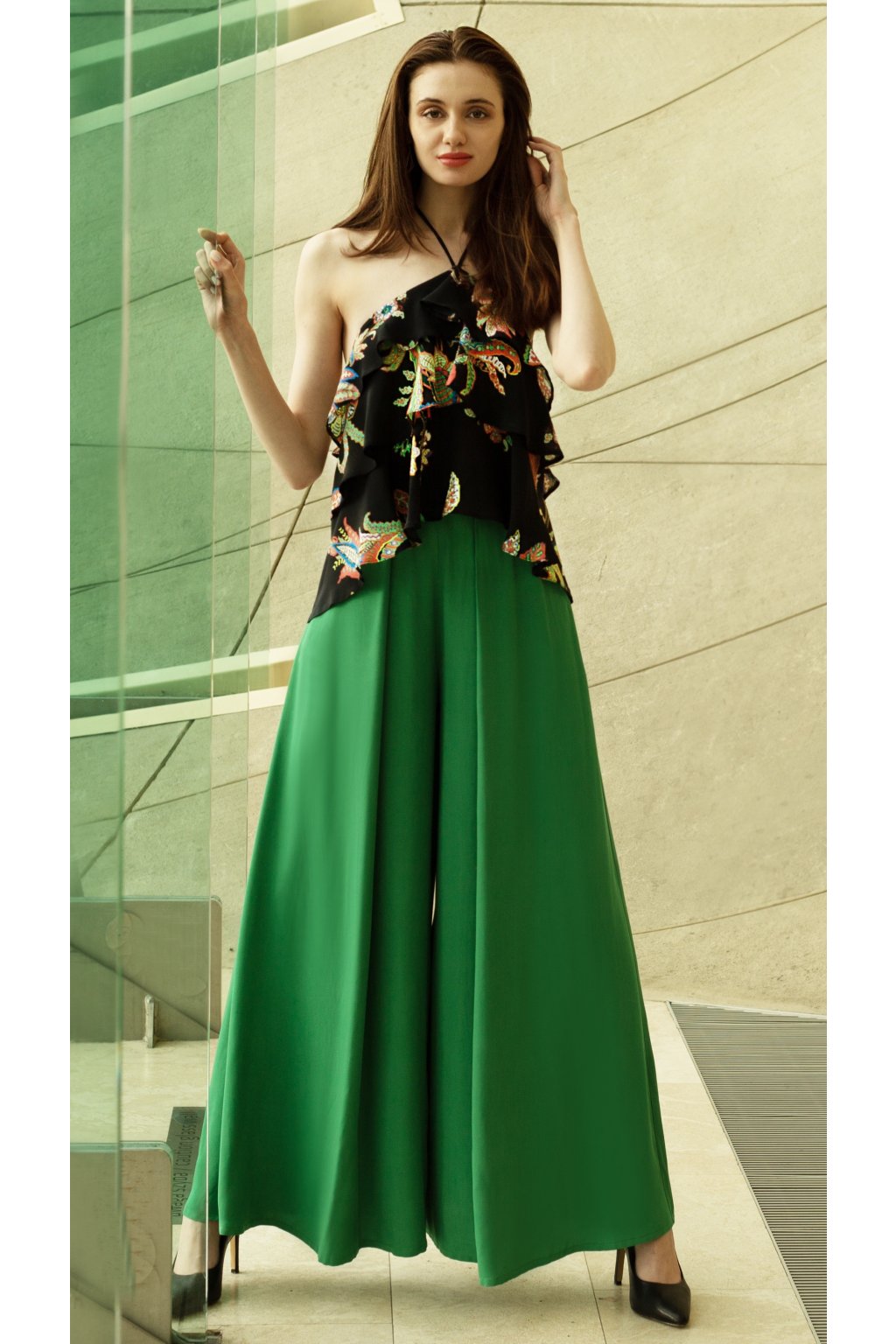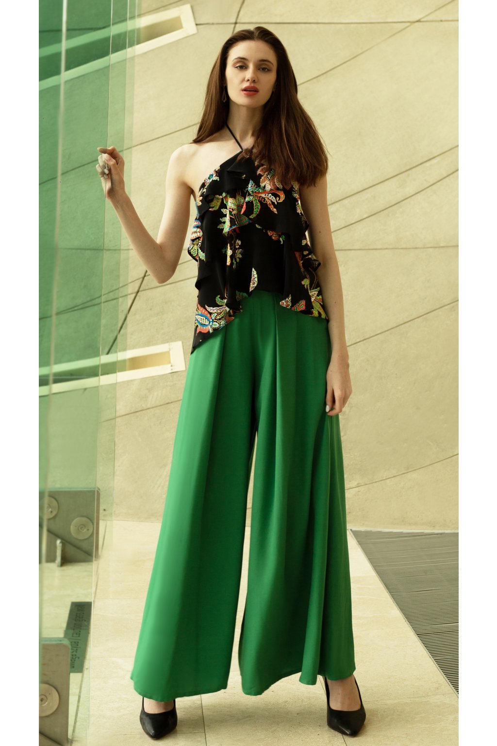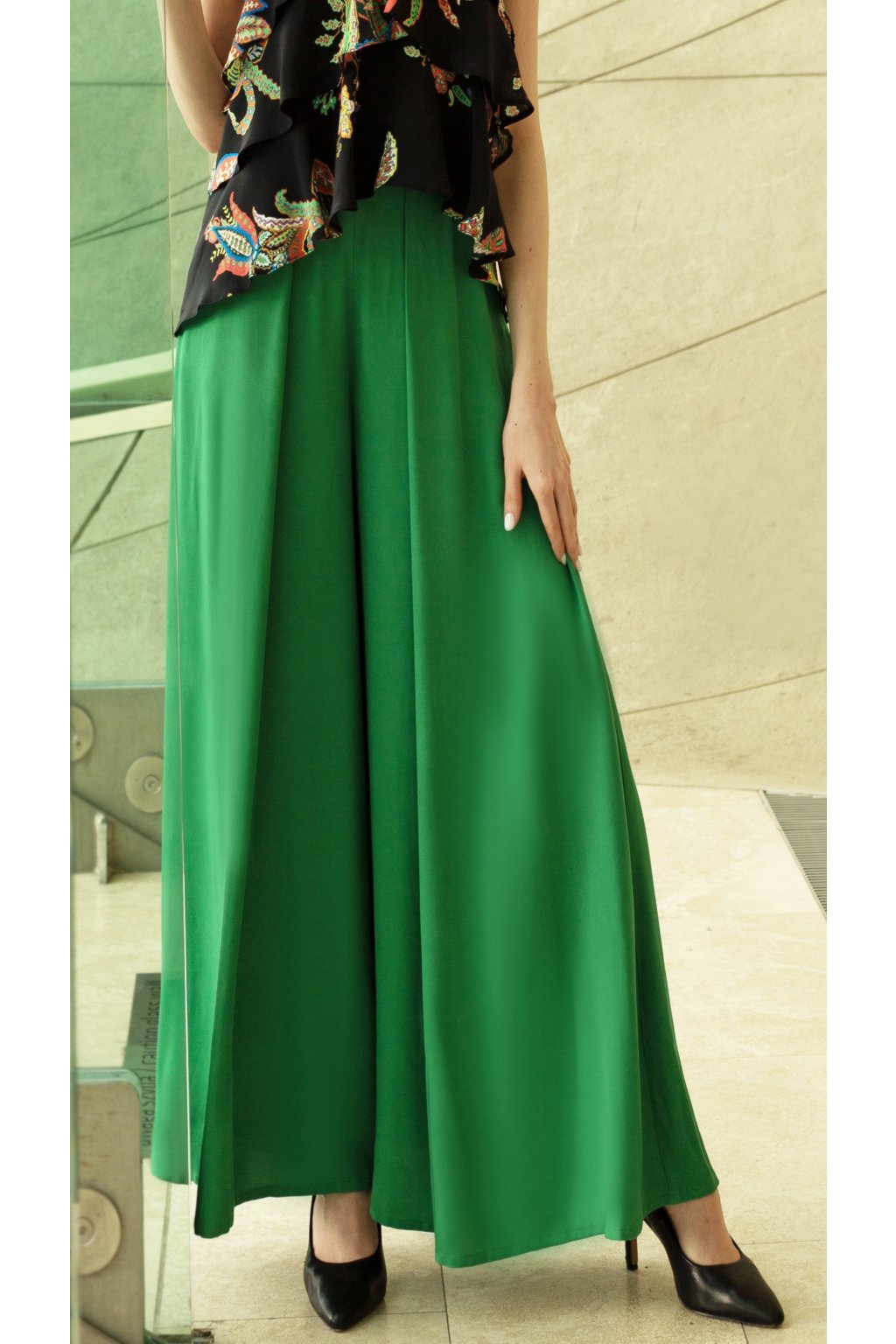 Při doplňování šatníku nezapomeňte na sukně-kalhoty, které přitáhnou mnoho pozornosti díky svému střihu. Široké nohavice dole a přišití horní části páskem pěkně zúží siluetu.
