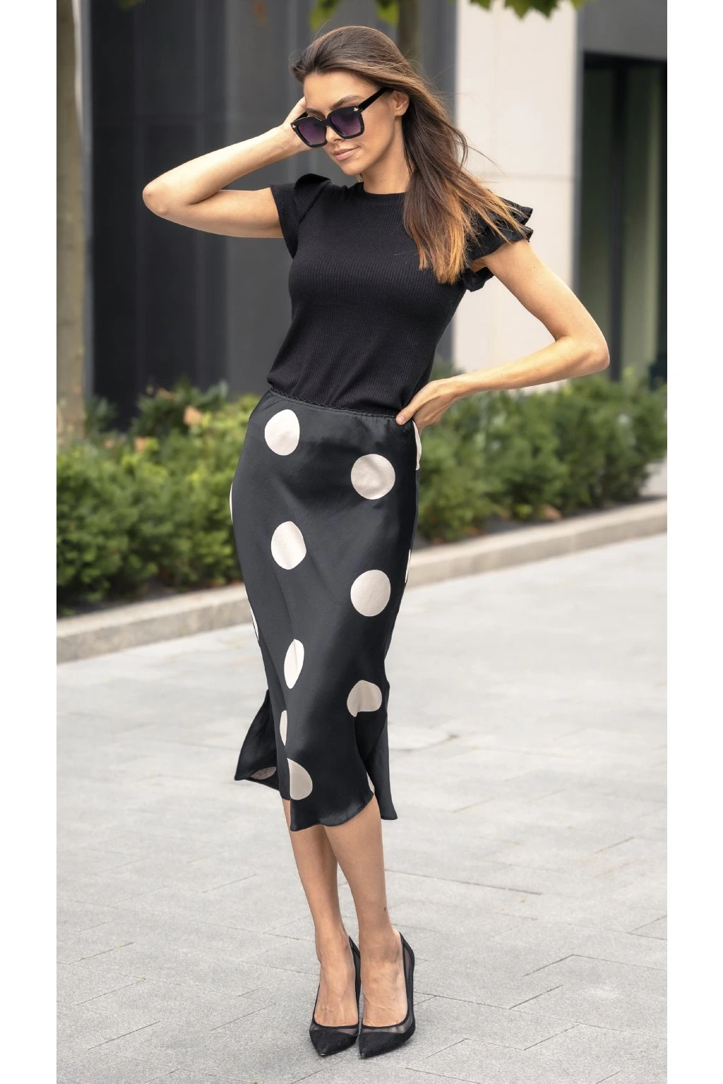 • Je střižena na šikmo, díky čemuž se hezky přizpůsobuje postavě.