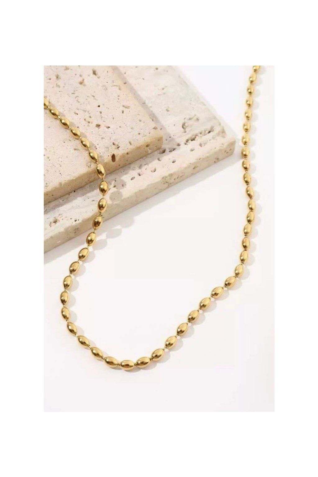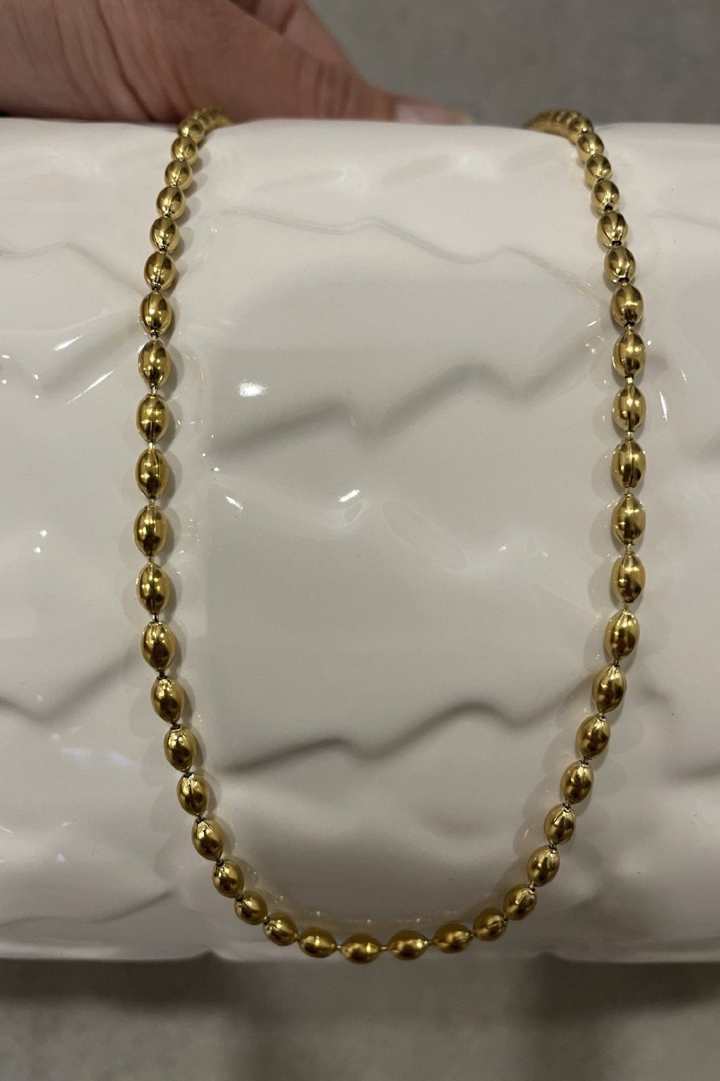 Elegantní, jemný a přesto nepřehlédnutelný. Tento zlatý náhrdelník s pravidelnými oválnými články působí minimalisticky, ale zároveň luxusně. Je to ideální kousek pro každodenní nošení i jako decentní doplněk k výraznějším outfitům.