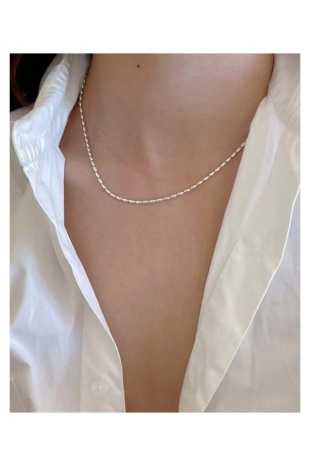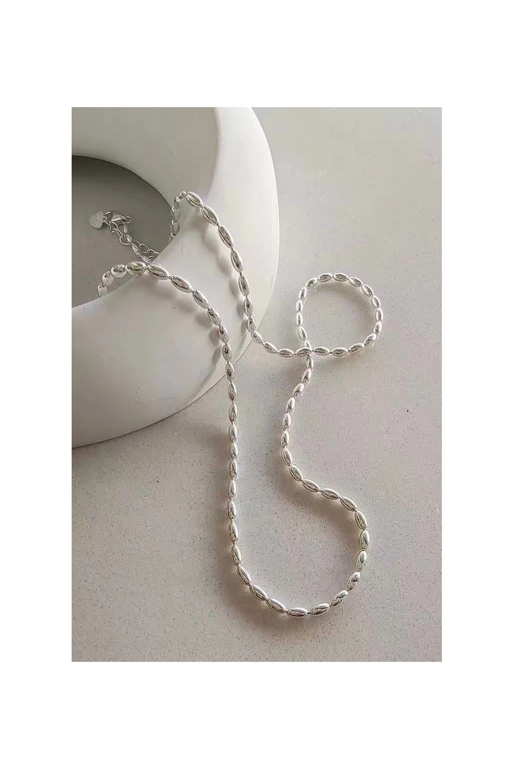 Objevte nadčasový řetízek z kvalitní nerezové oceli (Stainless Steel) v elegantním stříbrném provedení. Jemně tvarované články vytvářejí moderní, ale zároveň velmi univerzální design, který snadno zkombinujete s každým outfitem – od ležérního denního stylu až po večerní eleganci.