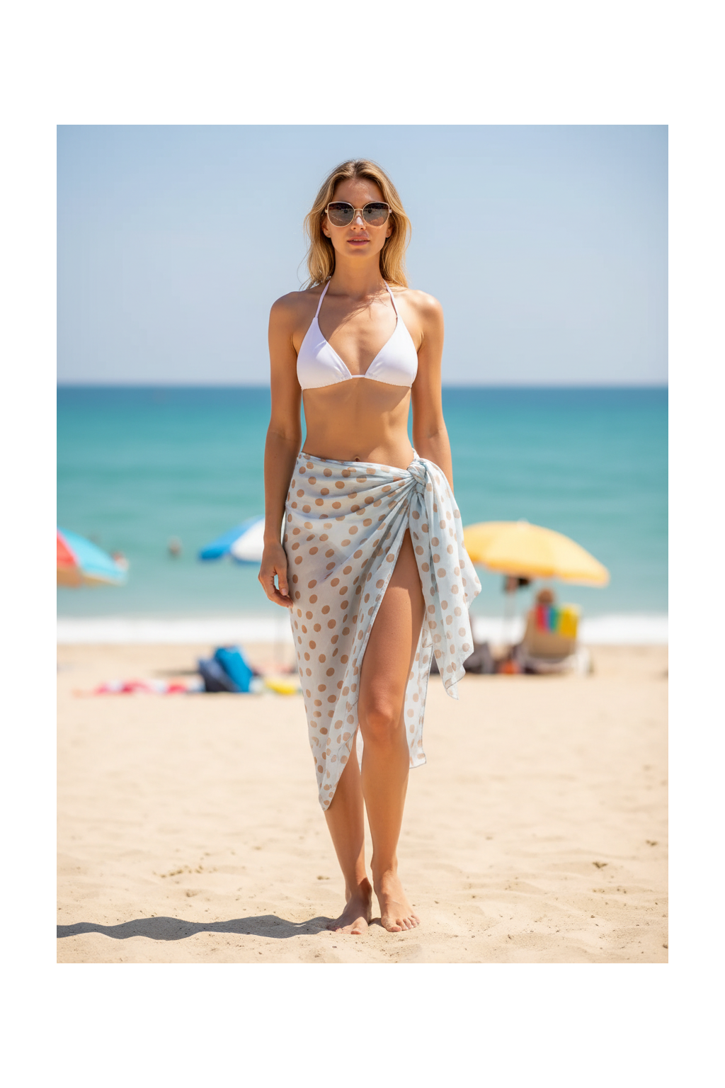- Tento sarong ve tvaru diamantu okouzluje svým radostným a nadčasovým puntíkovaným vzorem.