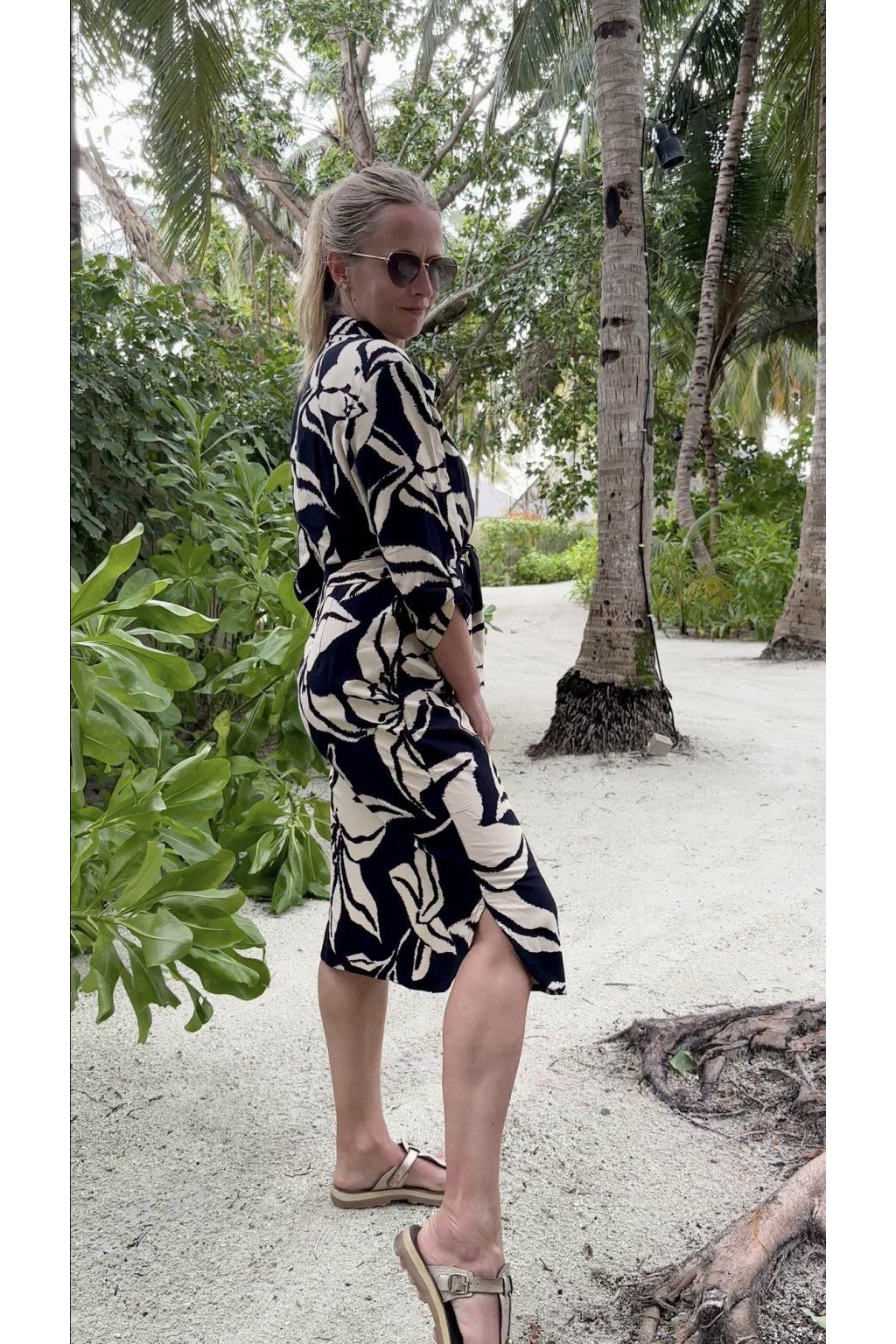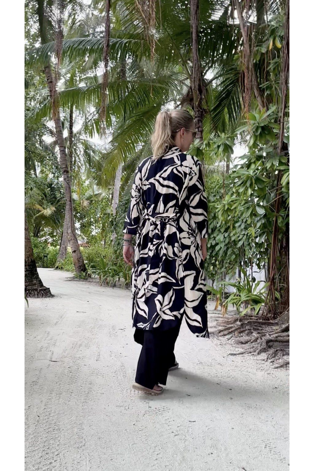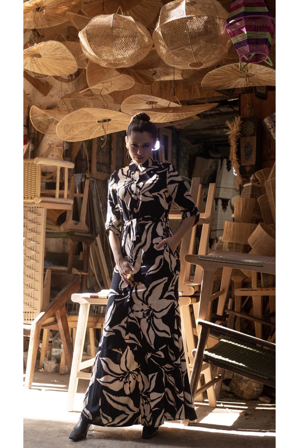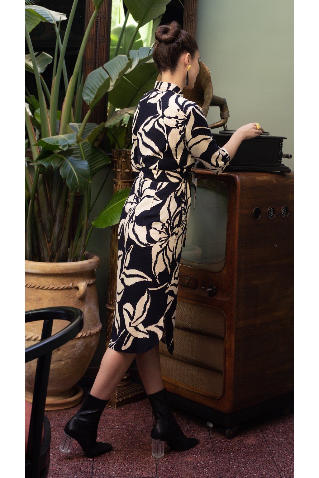 - Košilové šaty pod kolena vyrobené ze 100% viskózy s nádherným květinovým potiskem.